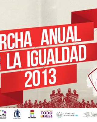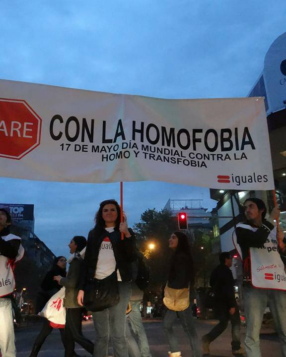 23 mayo, 2013Juvenil Iguales hace intervención urbana en el Día Internacional contra la homofobia. 23 mayo, 2013Juvenil Iguales hace intervención urbana en el Día Internacional contra la homofobia. Campaña 21 mayo, 2013Construyamos la bandera de la diversidad más grande de ChileAgencia Los Quiltros 21 mayo, 2013Marcha Anual por la Igualdad: la sociedad civil sale a la calle para exigir sus derechos 21 mayo, 2013Marcha Anual por la Igualdad: la sociedad civil sale a la calle para exigir sus derechos 19 mayo, 2013Kike Morandé: "A mí no me gustaría ver a dos gallos pololeando frente a mí. Si eso es homofobia, soy homofóbico." 19 mayo, 2013Kike Morandé: «A mí no me gustaría ver a dos gallos pololeando frente a mí. Si eso es homofobia, soy homofóbico.» Ley de Identidad de Género 18 mayo, 2013La necesidad de una ley de identidad de género para Chile