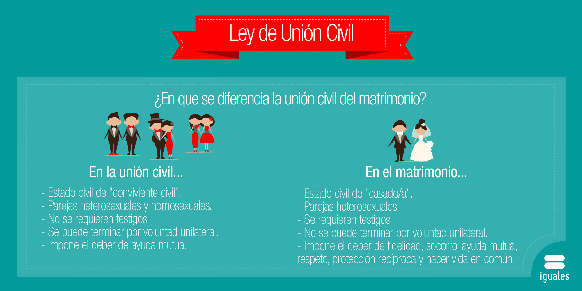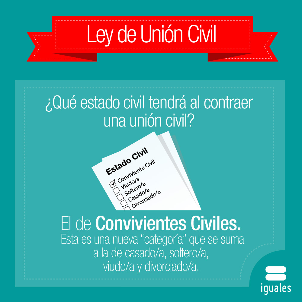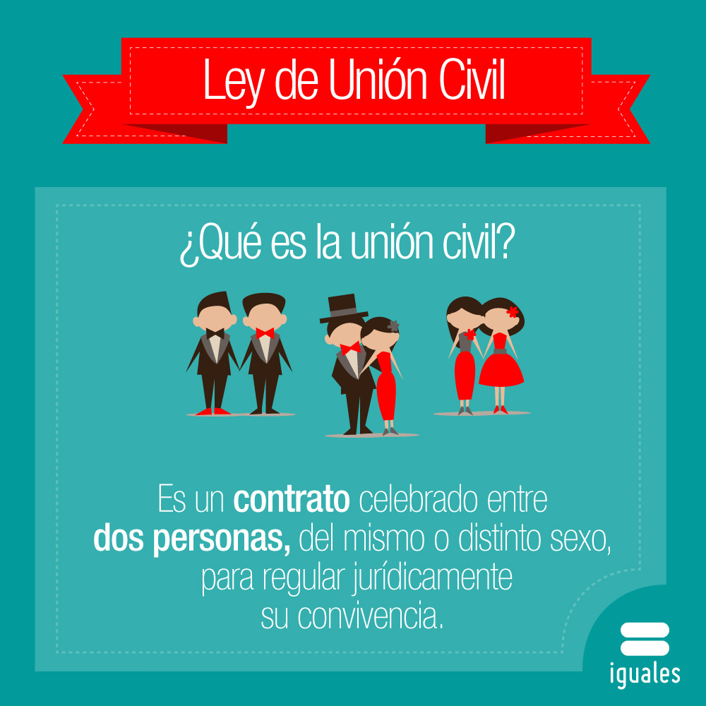 La unión civil, como evidencia el primer artículo de la ley: “es un contrato celebrado entre dos personas que comparten un hogar, con el propósito de regular los efectos jurídicos derivados de su vida afectiva en común, de carácter estable y permanente”. Esto quiere decir que la unión civil se encarga de regular la convivencia de las parejas, quienes pasan a llamarse convivientes civiles, en aspectos familiares, patrimoniales, de salud y/o laborales, entre otros.